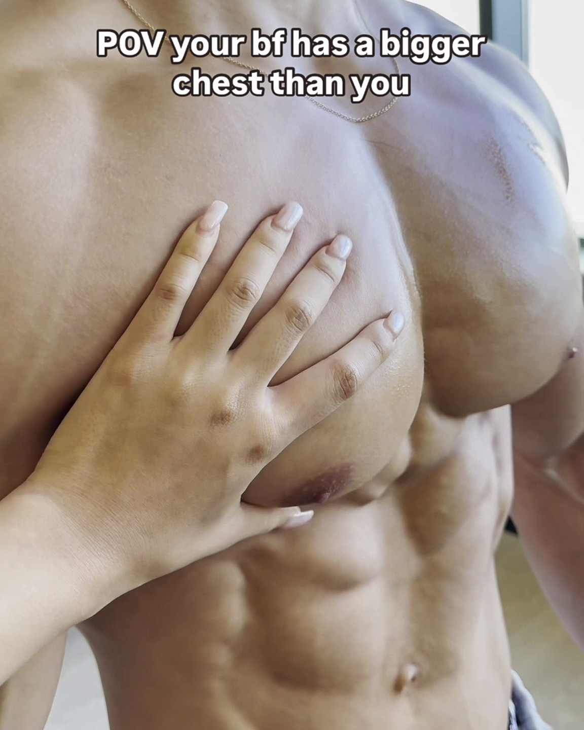 Sometimes, seeing a woman grab a man’s pecs can leave pecs fans feeling… unsatisfied. But William Li’s girlfriend, Jess Zheng has mastered the art! She grabs it like she means it! You go, girl! We hope you never stop enjoying William’s tight, meaty, sensational chest!
